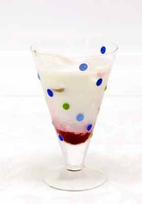 イチゴミルクのカシス版です。2層になったジュリエットミルクをステアすることで、ピンク色のかわいい飲み物になります。お子様とご一緒にお召し上がりください。